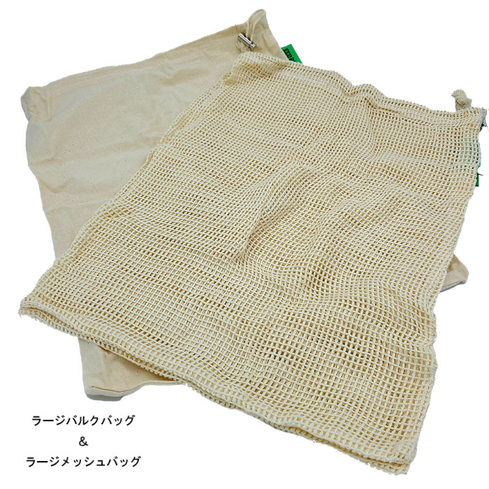 メッシュとバルクの2種類のバッグが、それぞれスモール・ミディアム・ラージの3サイズ入っているので、幅広くいろんな使い方ができます。