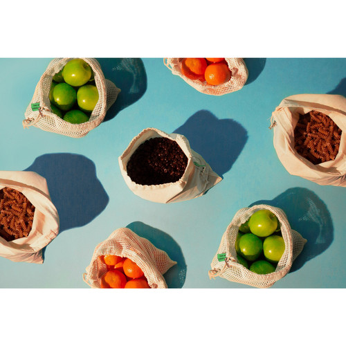 EcoRootsの再利用可能なプロデュースバッグは、天然のオーガニックコットンで作られています。