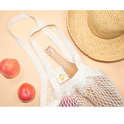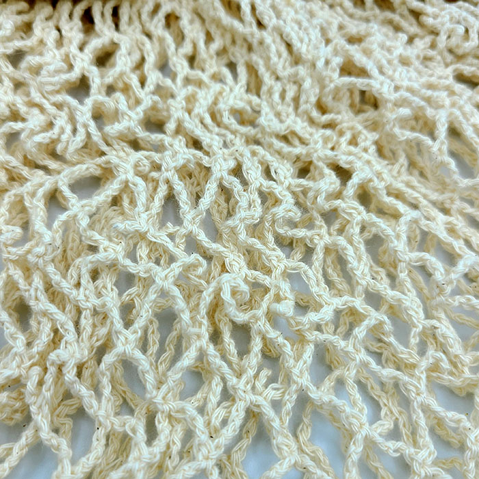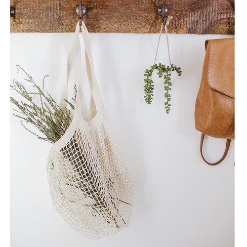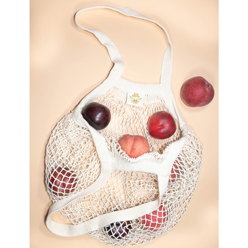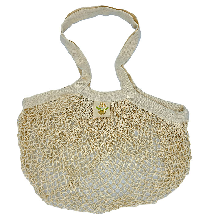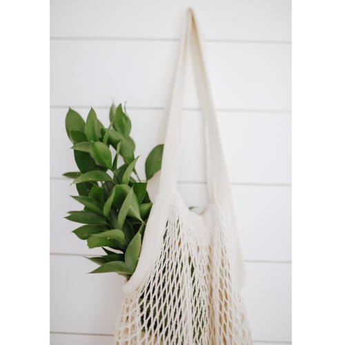 オーガニックコットンのストリングバッグは、ハンドルが長く、最大40ポンド(約18.14kg)まで入れられます。