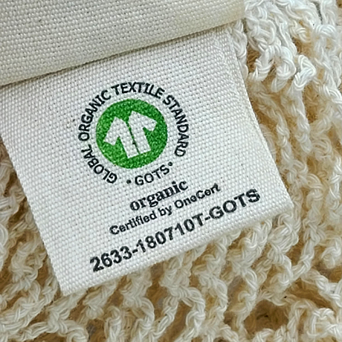 リサイクル可能なテキスタイル。生分解性があり、GOTS認定オーガニックコットンで作られています。エコバッグとしても◎