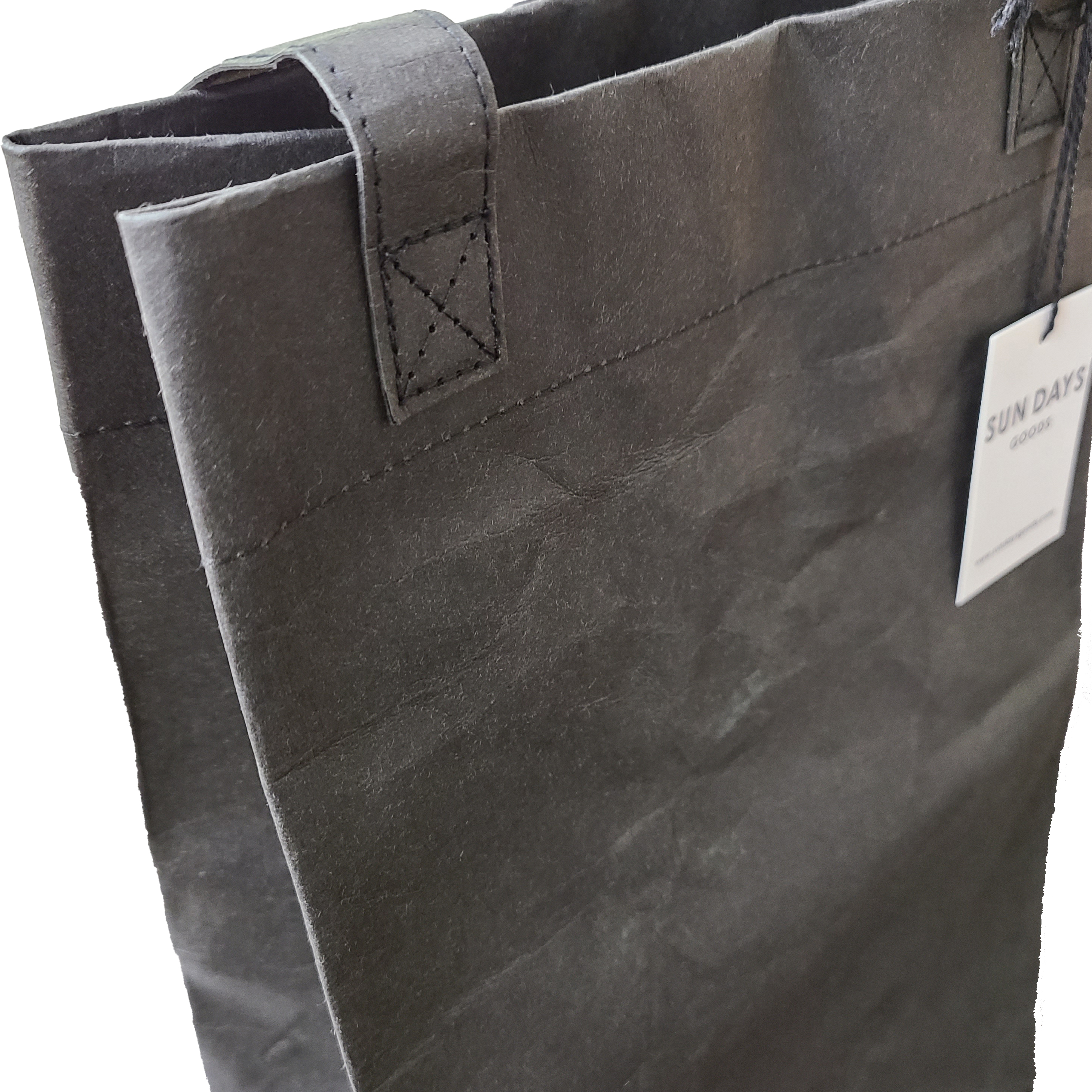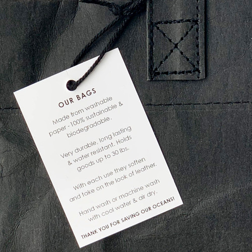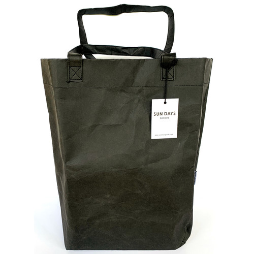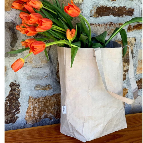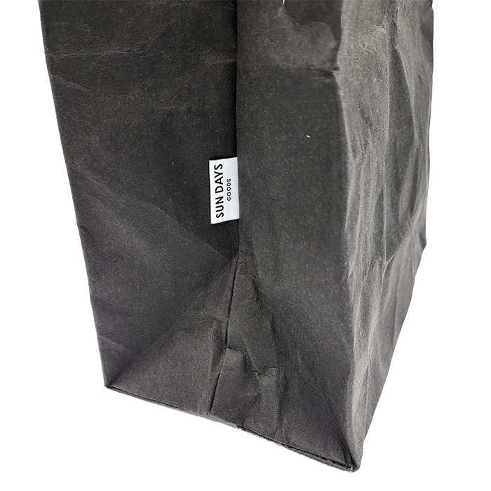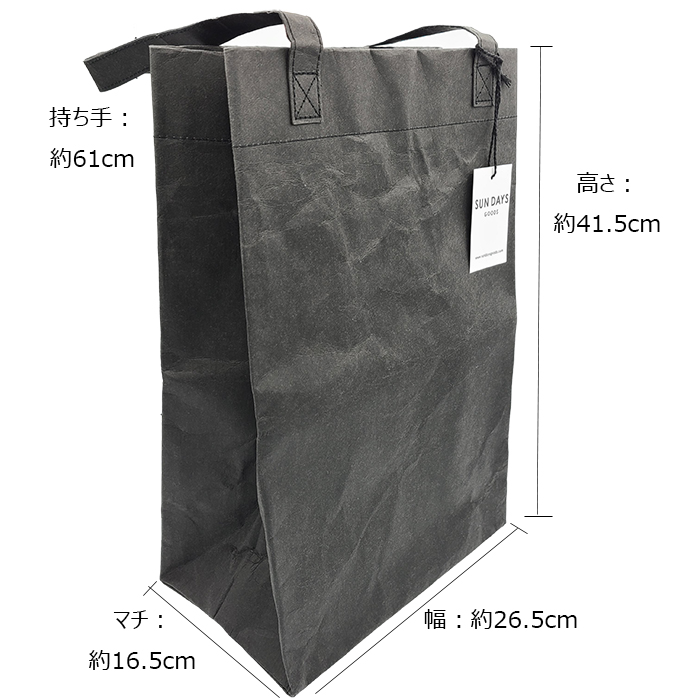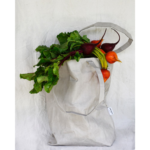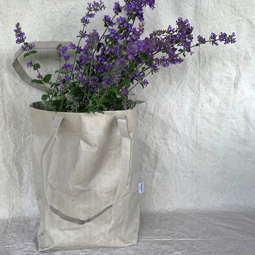天然セルロース繊維で洗える紙で作られているため、持続可能で生分解性があり再利用できます。ハンドルは隠された綿のウェビングで補強されており、最大30ポンド(約13.6kg)の運搬が可能です。