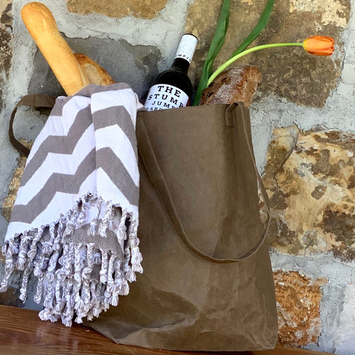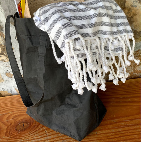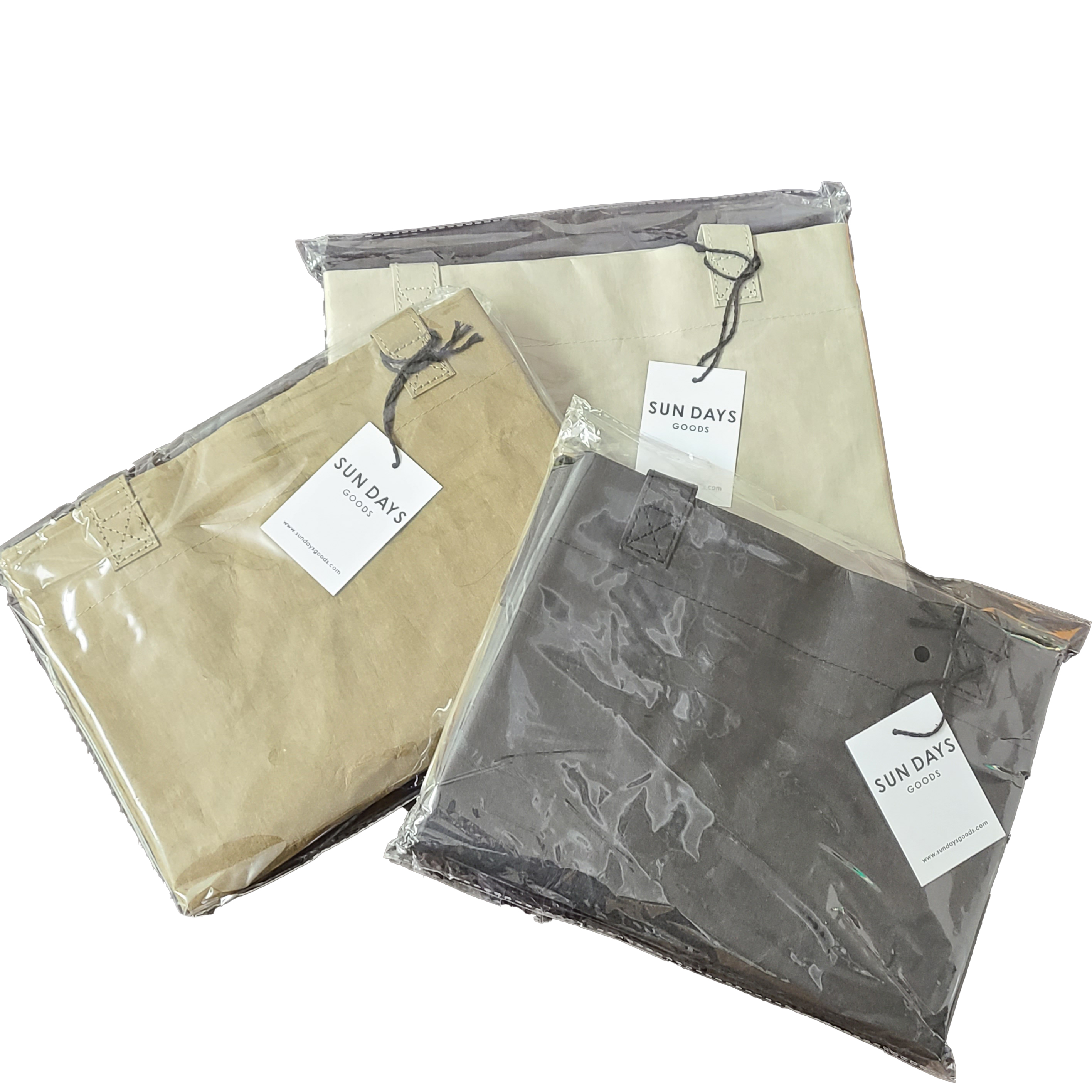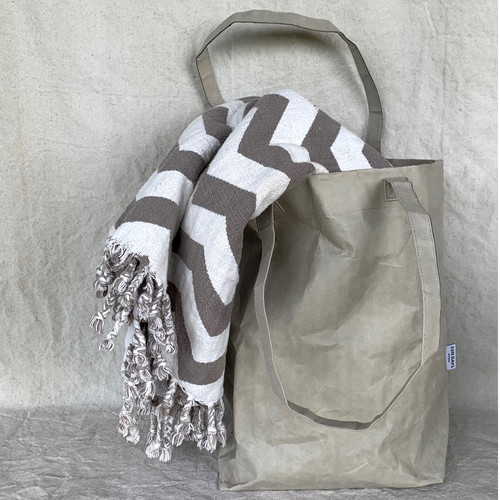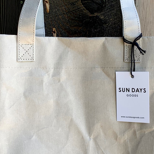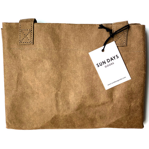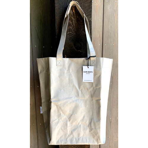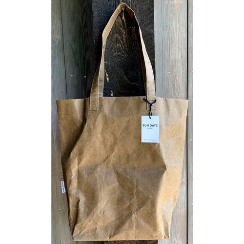 天然セルロース繊維で洗える紙で作られているため、持続可能で生分解性があり再利用できます。ハンドルは隠された綿のウェビングで補強されており、最大30ポンド(約13.6kg)の運搬が可能です。
