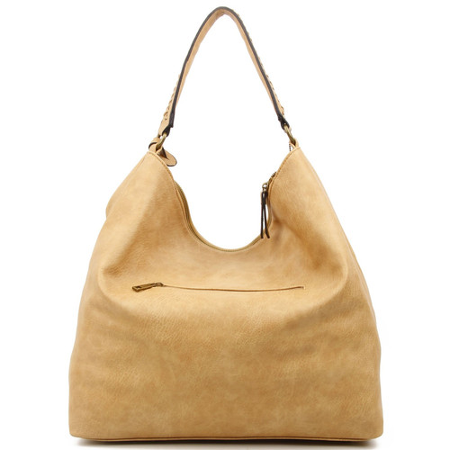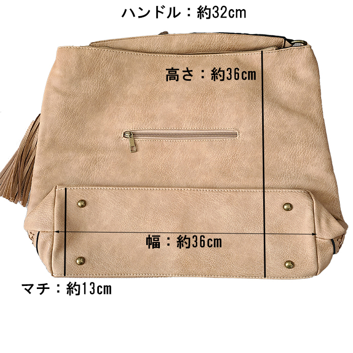 前面には 美しい織りステッチが施されています。バッグの裏側には ジッパーポケットが付いています。