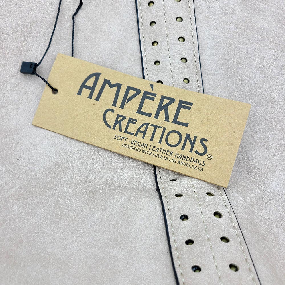 動物の皮革を使わず本革の繊維構造を人工的に再現した合成皮革のこと。 本革と比べ、軽く水に強い特徴があります。 動物に配慮しながらオシャレを楽しむサステナブルファッションとして、注目を浴びている素材です。 Ampere Creationsのバッグはヴィーガンレザー(ポリウレタンやポリ塩化ビニール)を使用して作られています。